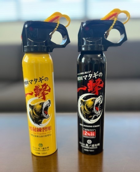 (株)熊ノ護化研様から発売された熊撃退スプレー、その名も「秋田マタギの一撃」。弊社でも販売代理店として販売を開始いたしました。